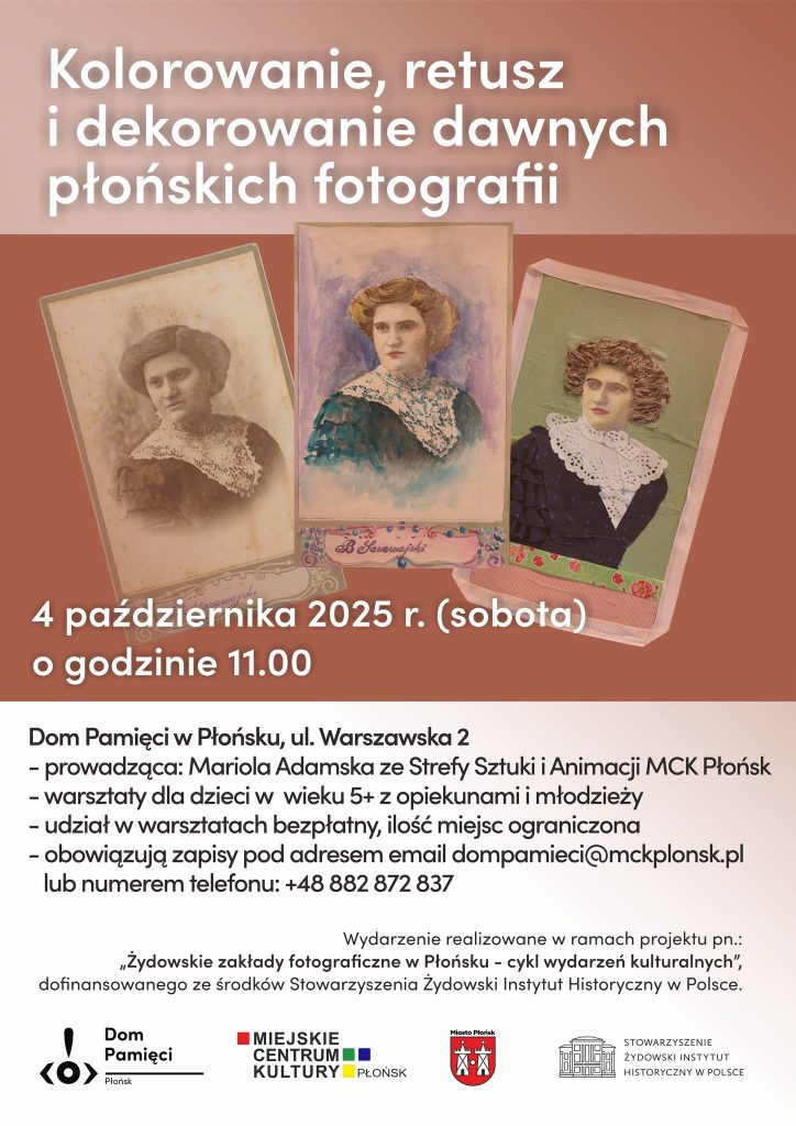 Warsztaty odbywają się w ramach naszego tegorocznego projektu „Żydowskie zakłady fotograficzne w Płońsku – cykl wydarzeń kulturalnych”, dofinansowanego przez Stowarzyszenie Żydowski Instytut Historyczny w Polsce.